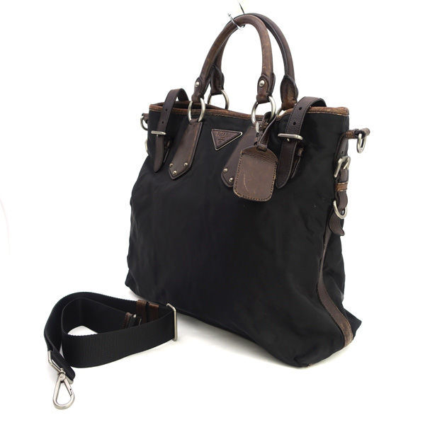 - ■ プラダ 2WAY バッグ ナイロン ブラック ブラウン」 ショルダー レジャー 仕事 (0990014768)