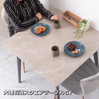 > ダイニングテーブル スクエアテーブル 大理石調 おしゃれ 幅80 正方形 2人用 角テーブル 食卓 TAP-202 GY
