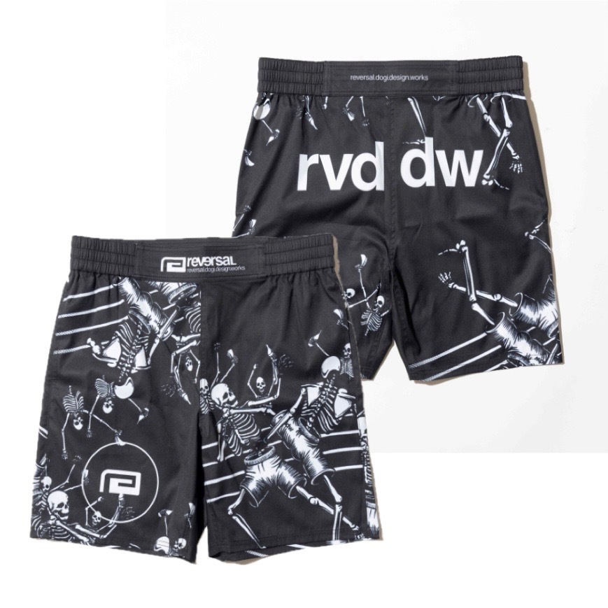 > リバーサル × Shinha■送料込■限定コラボ■FIGHTING SKULL ファイトパンツ 黒■水陸両用ショートパンツ■REVERSAL 格闘技 スカル ドクロ