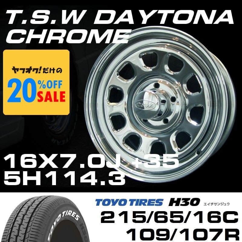 > 特価 TSW DAYTONA クローム 16X7J+35 5穴114.3 TOYO H30 ホワイトレター 215/65R16C ホイールタイヤ4本セット