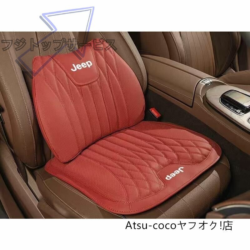 > ジープ 高品質 シートクッション 車用 シートカバー ナッパ レザー 腰当て 滑り止め 弾性 座布団1点+腰クッション1点★レッド★