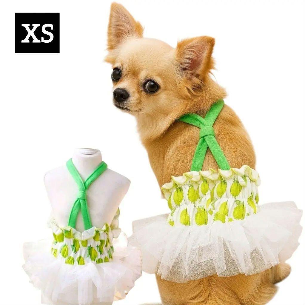 - 新品 犬服【XS】ライム チュチュ ワンピース サマー ドレス 春 夏 バレエコア 犬の洋服 小型犬 超小型犬 プードル チワワ ドッグウェア