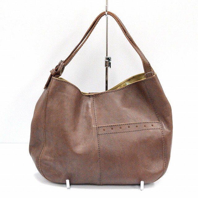 - ピークスピーク(PEAKS PEAK) レザー ショルダートート ブラウン 【中古】 JA-18864