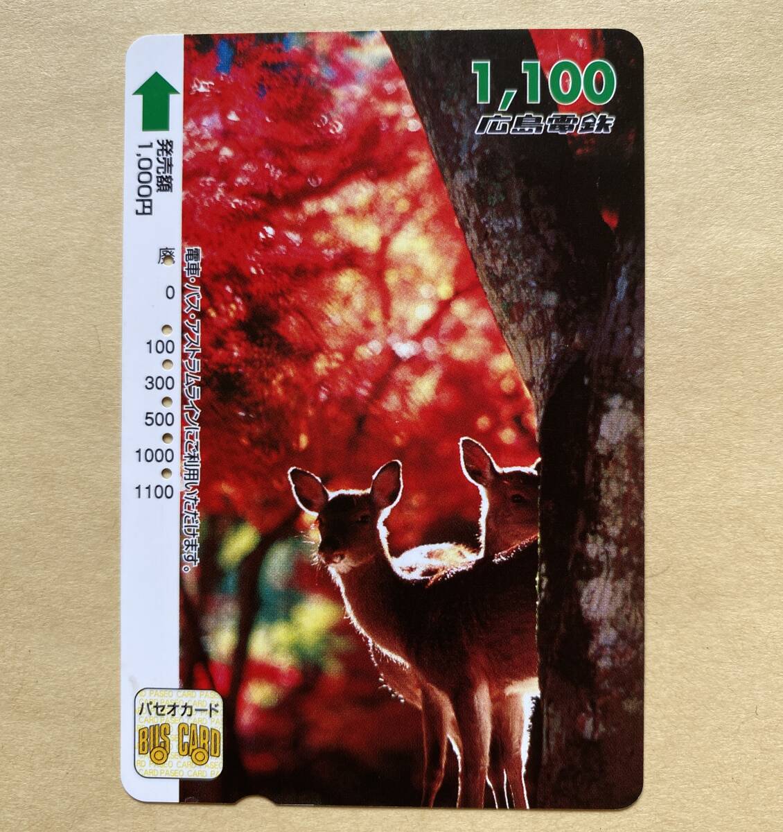 - 【使用済】 パセオカード 広島電鉄 紅葉の中のシカ