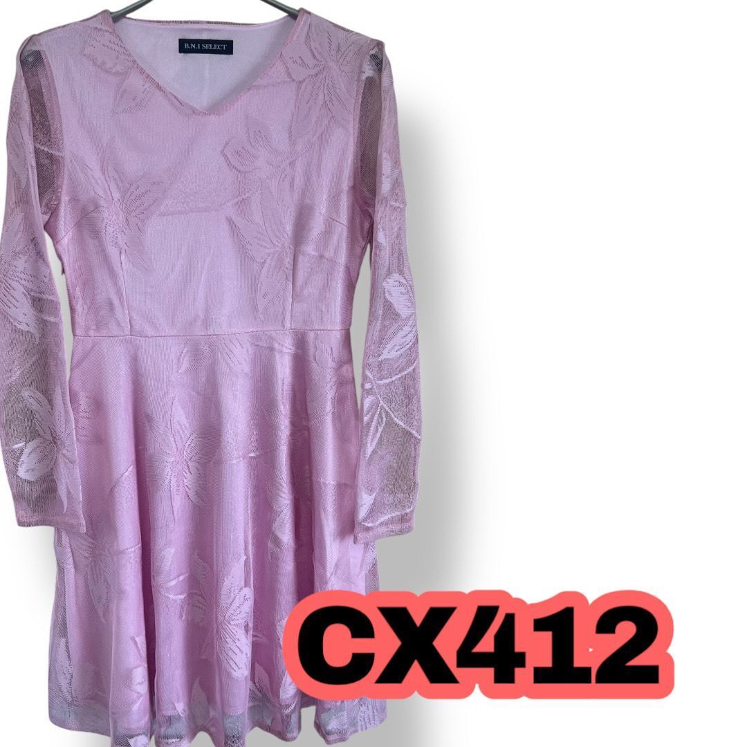 - [ビーエヌワン] セレクト ワンピース パーティー ドレス vネック シースルー 長袖 ミニ 膝上 レディース Lサイズ ピンク 管理CX412