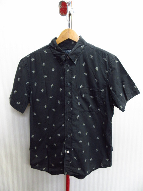 - ポールスミス バナナ総柄シャツ メンズL 黒 襟付き半袖カットソー サマーシャツ 半袖シャツ 総柄デザイン半袖ボタンダウンシャツ 07101