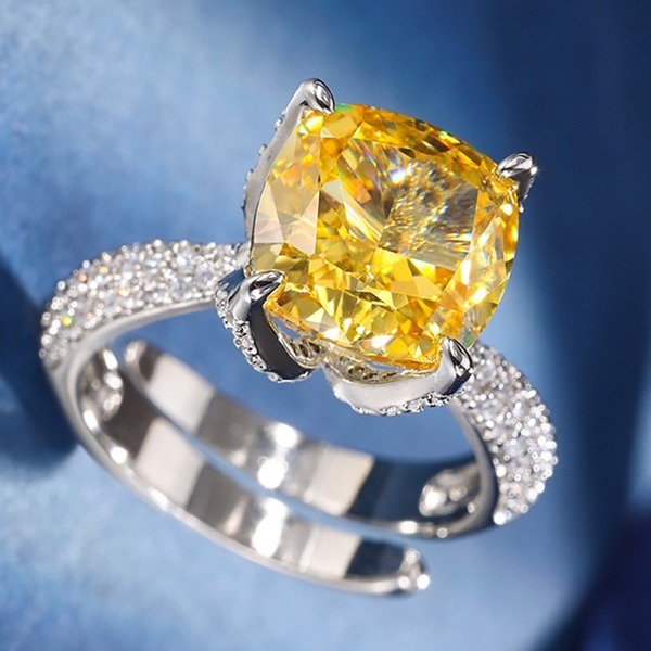 - 女性のためのトパーズリング 、10x10mm、高炭素ダイヤモンド、残り時間4日までに最初に入札すると開始価格で購入可能 Kn