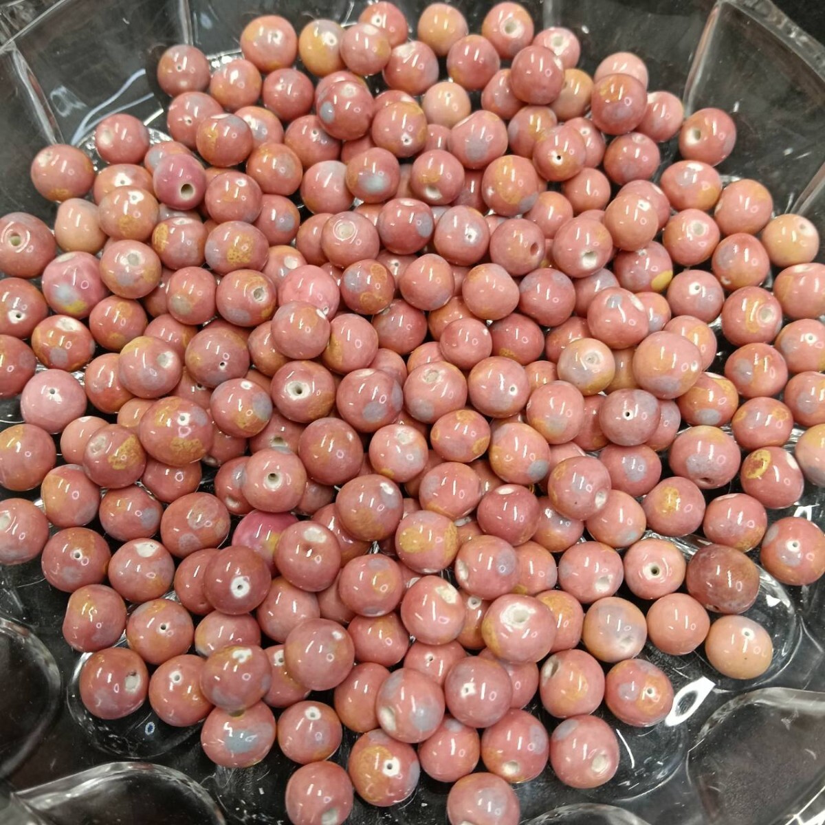 - ☆未使用 大量 片穴 チェコ ガラスビーズ 161g 9mm ラウンド ピンク 大粒 ヴィンテージ 手芸 パーツ アクセサリー ネックレス B-135