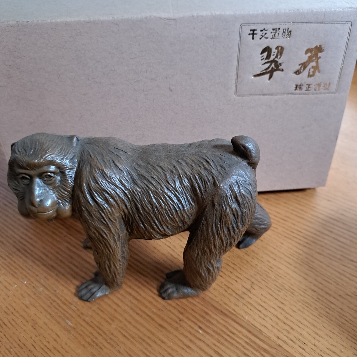 - 猿 置物 金属製 箱つき お正月 飾り 干支置物 翠春 瑞正謹製 インテリア オブジェ 置物 動物