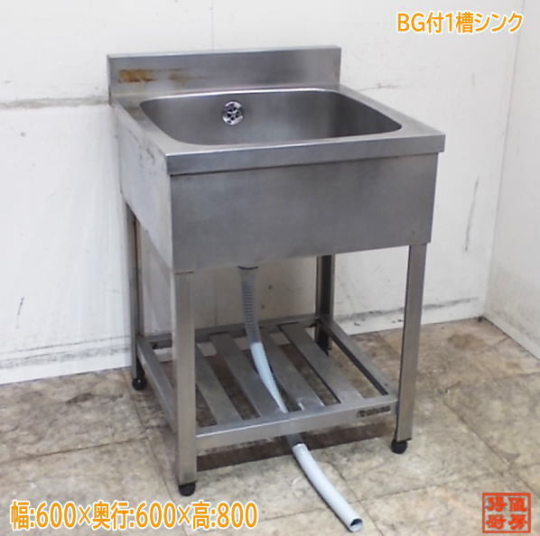 > ステンレス アズマ BG付1槽シンク 600×600×800 業務用1層流し台 中古厨房/25E3023Z