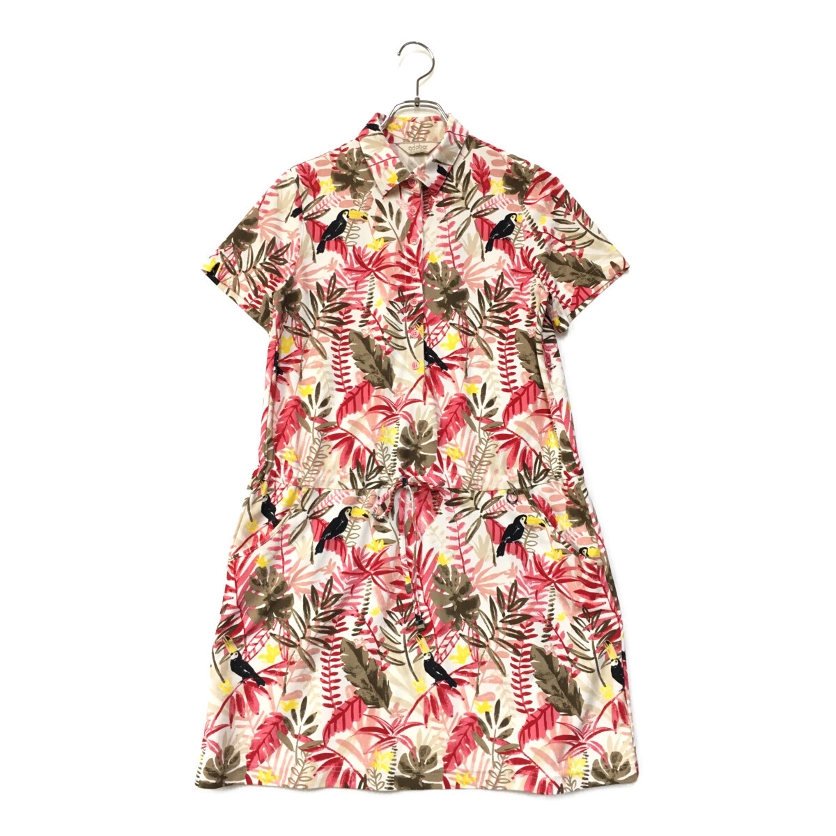 > coco 中古【SALE】アダバット adabat レディース ワンピース 38(M) 白×ピンク系 半袖 総柄 南国柄 レターパックプラス発送可 90656