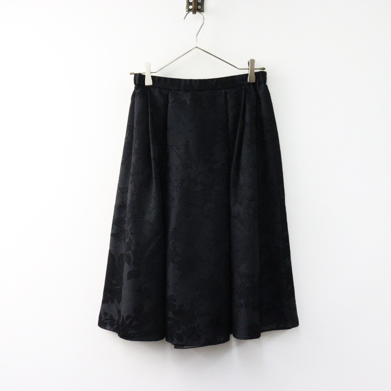 > 美品 自由区 オンワード樫山 フラワーオパール リバーシブルスカート 38/ブラック タック フレア ゴム【2400014516333】