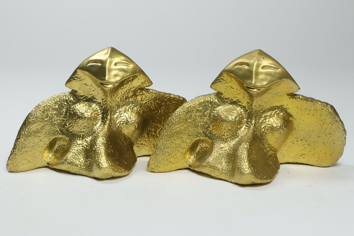 ・坂田甚内 金彩オブジェ 二点 陶芸 2/益子焼 深甚紋 置物 宇宙人 |