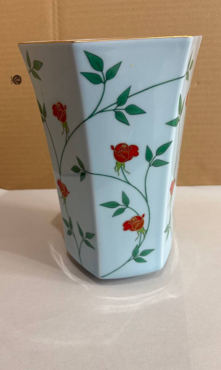 - ◆◇【管理INS000038】香蘭社 六角花瓶 薔薇/バラ柄/陶器/花器◇◆