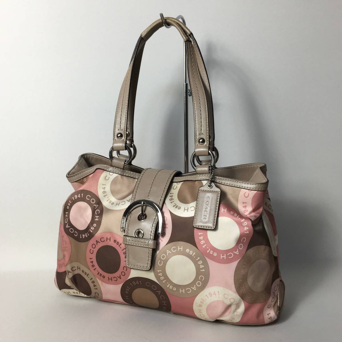 > 2506-241|美品|コーチ ショルダーバッグ グレージュ 総柄