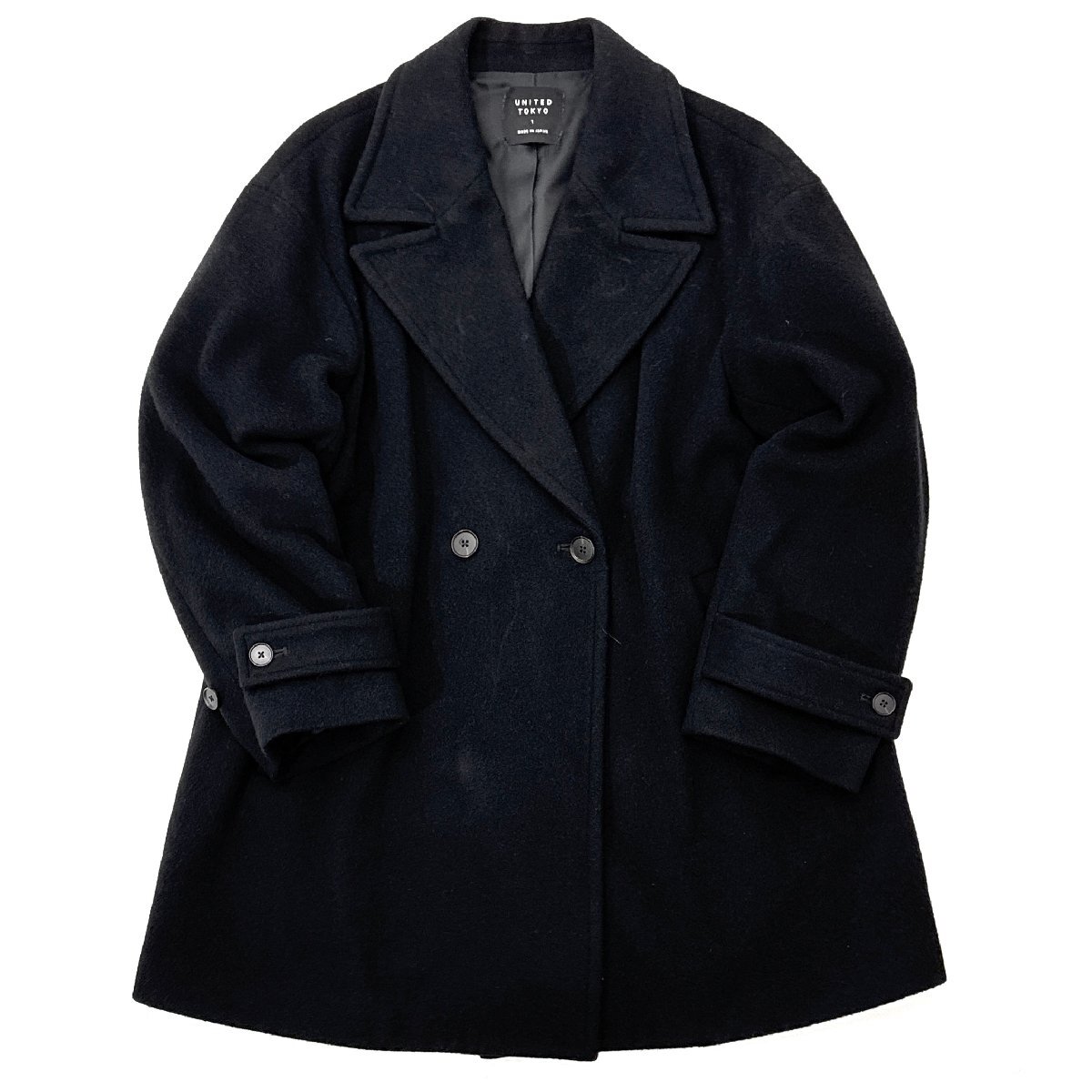 - UNITED TOKYO エクストラウールビッグカラーショートコート 定価20,790円 size1 BLACK 141551002 ユナイテッドトウキョウ