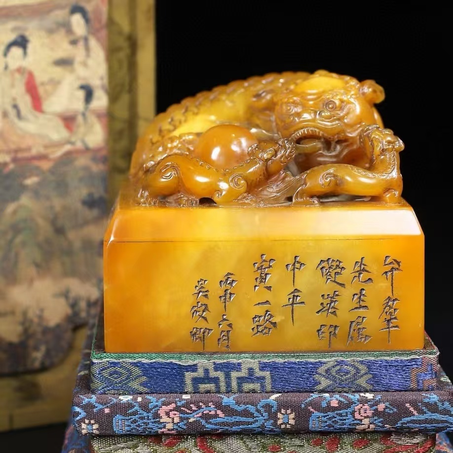 - 印鑒 寿山石 秘藏 清代【三獅子宝珠図 ・玉璽 山水印】 印章 古印材 印鑑の方 老玉 唐物 古玉彫 天然石 稀少珍品 古賞物 古置物 旧蔵 7.15