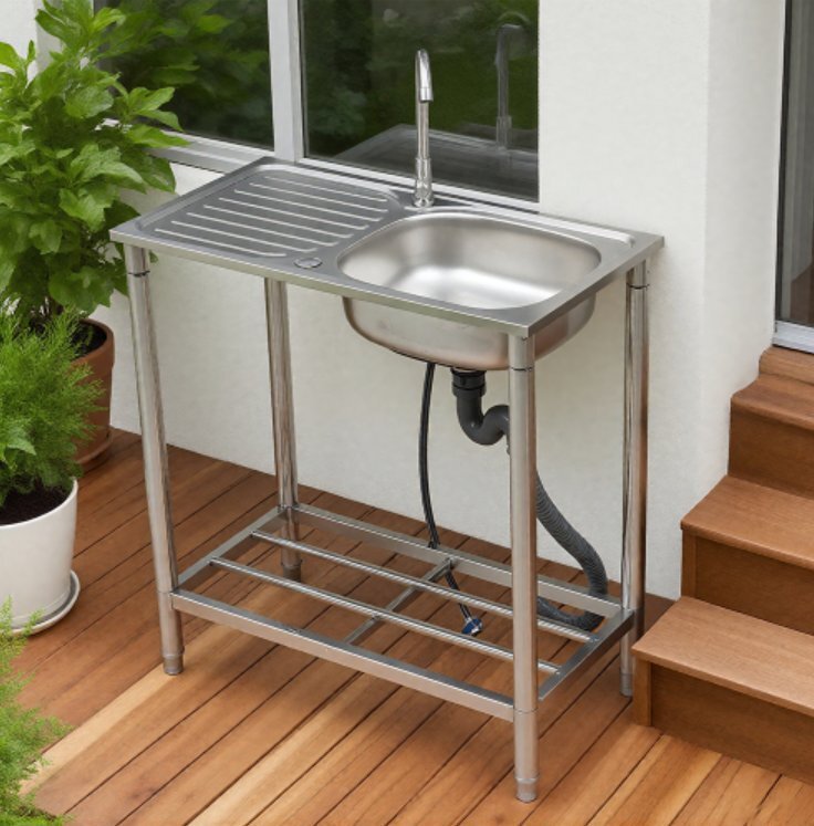 - 流し台 屋外 ステンレス 水栓付 蛇口付き シンク アウトドア 幅広 水栓付き キッチン 屋外用 ステンレス流し台 ステンレスキッチン キャン