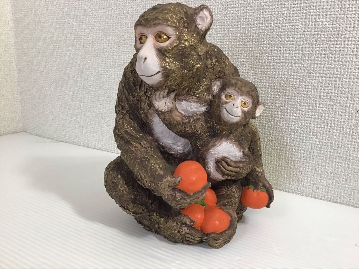 - 博多人形 猿の親子 置物 土人形 高約22cm 柿 オブジェ 焼き物 さる 子供 郷土玩具 インテリア