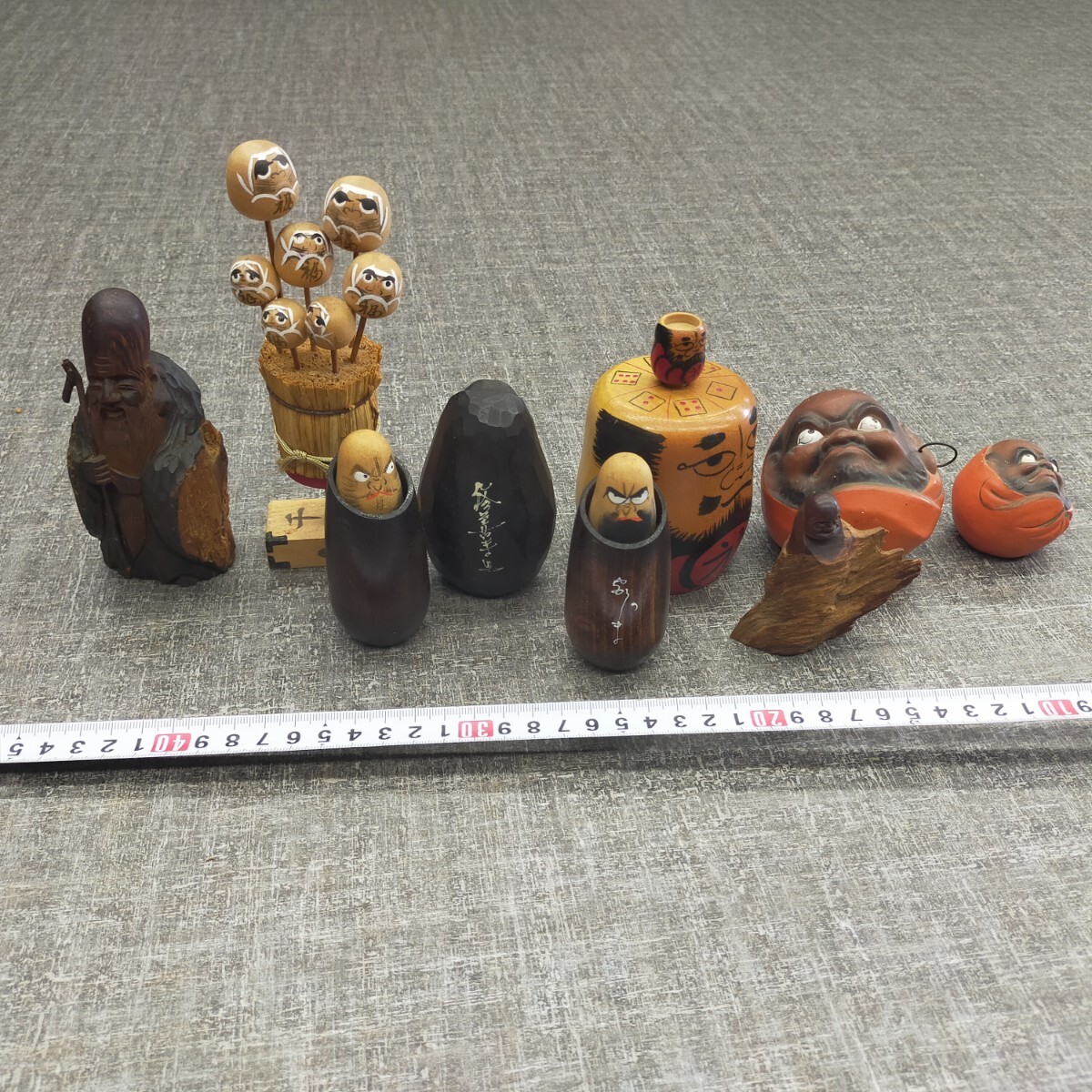 - す3193 置物 だるま 紅白連磨 ダルマ 在銘 民芸品 伝統工芸 和風置物 開運福禄寿 まとめ 達磨大師 木彫り 陶器