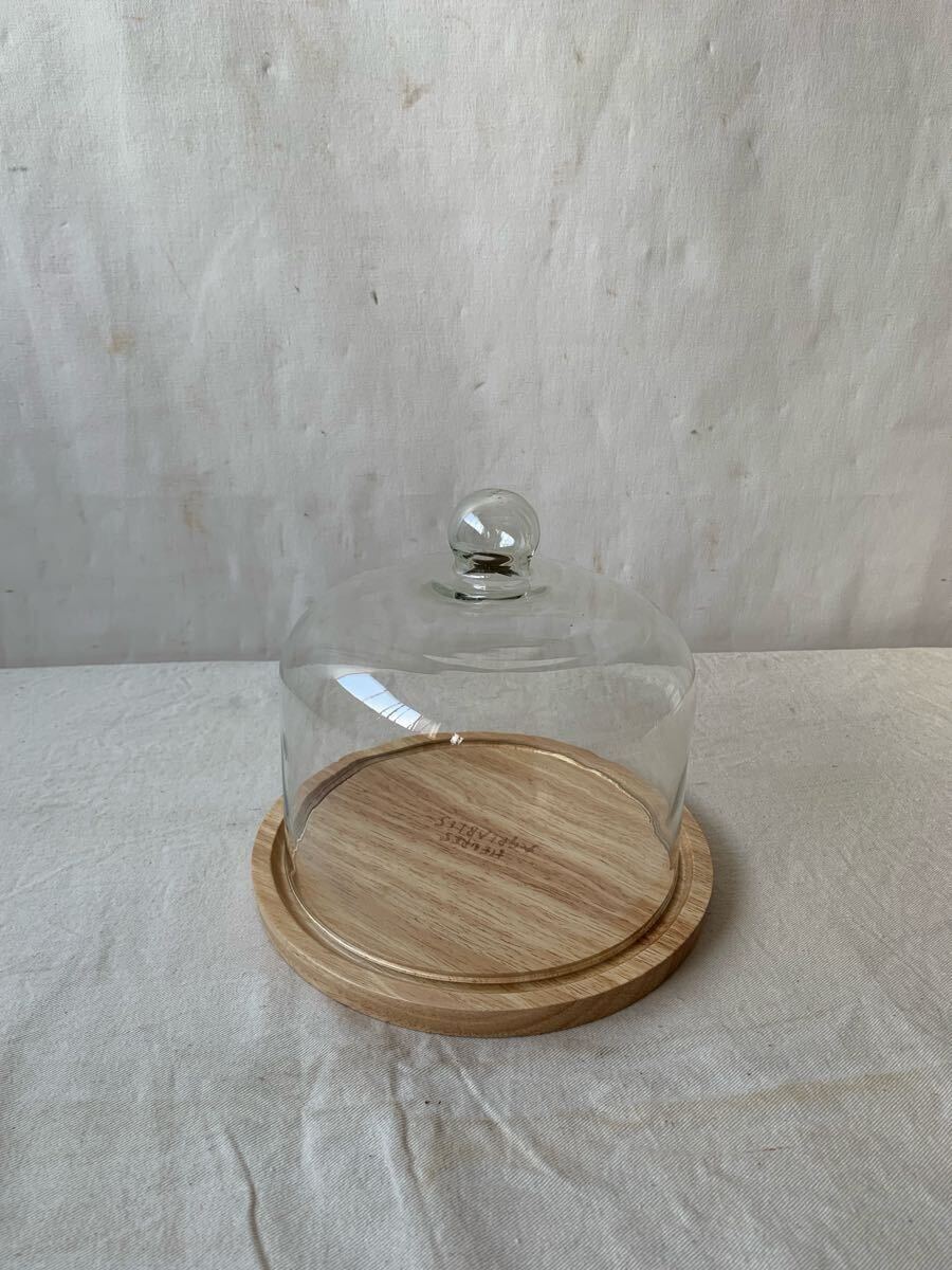 - デッドストック 木製台座付ガラスドームケース ケーキお菓子店舗什器古道具アンティークビンテージインテリアディスプレイ雑貨小物入れ飾り