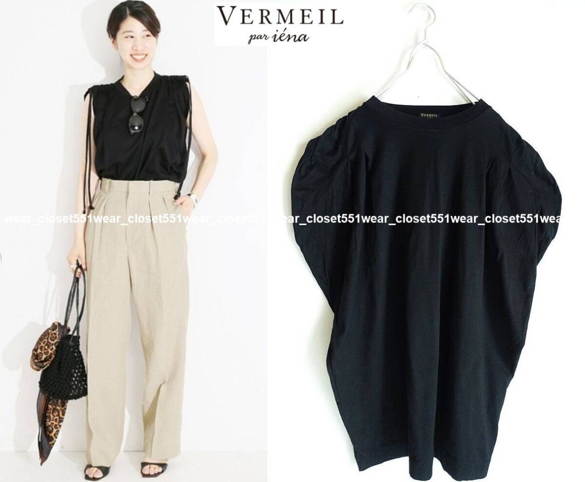 - 2021 美品VERMEIL par iena イエナ☆ドロストショルダーH/N プルオーバー F ブラック 日本製★19800円