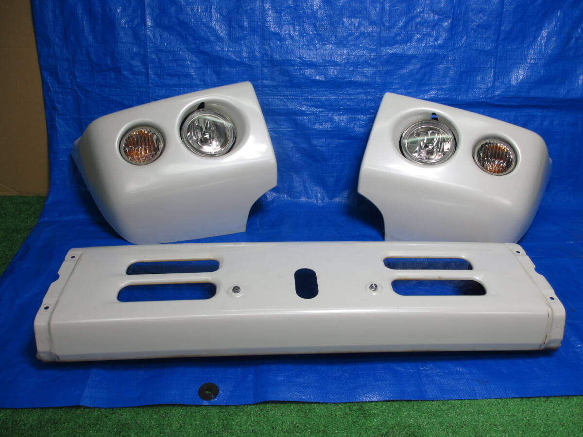 > 管1299-1 三菱 パジェロミニ H53A H58A 純正 フロントバンパー 3点 フォグランプ パールホワイト W13