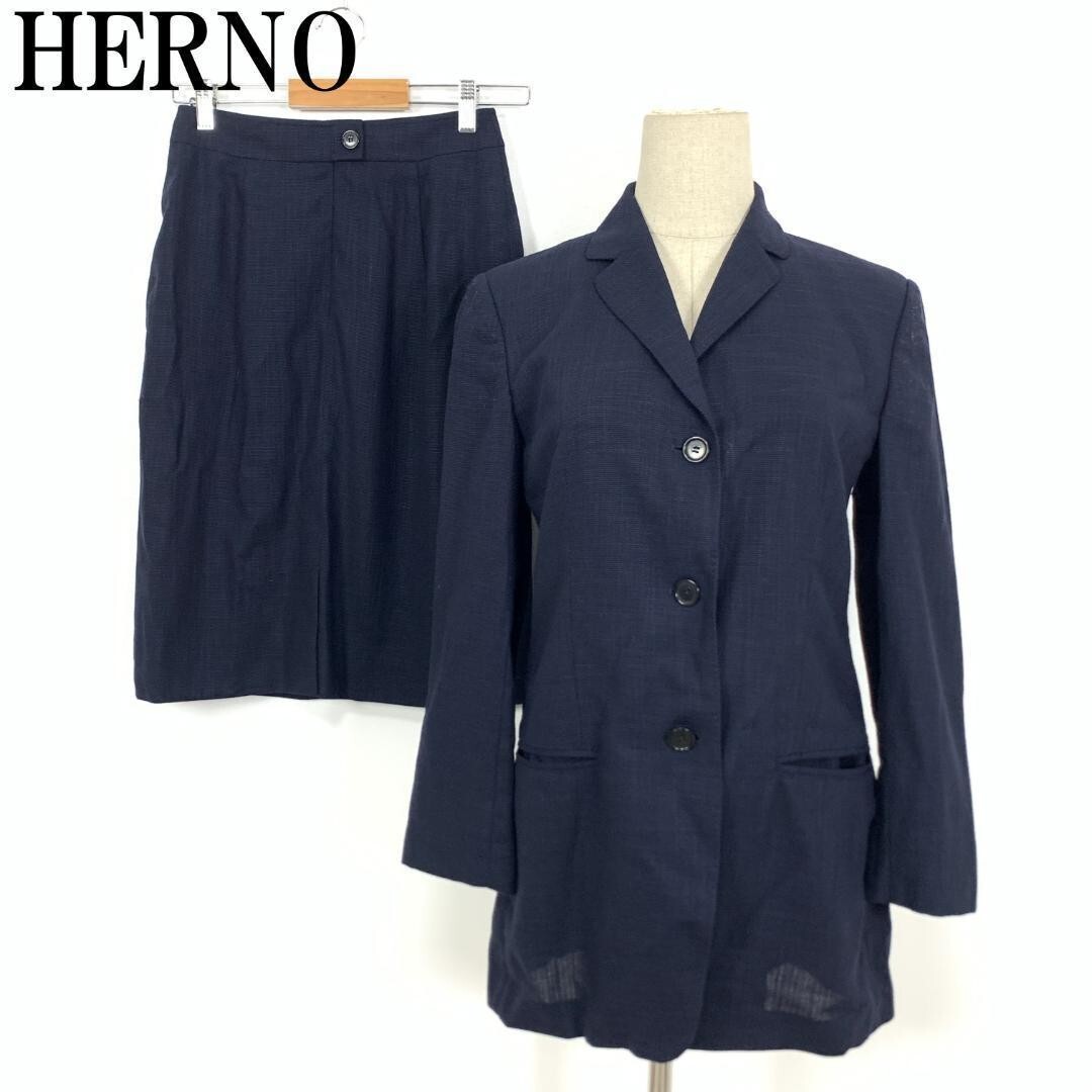 - LA6920 ヘルノ 麻100% スカート セットアップ HERNO カジュアル ロング丈感 テーラードジャケットネイビー 40