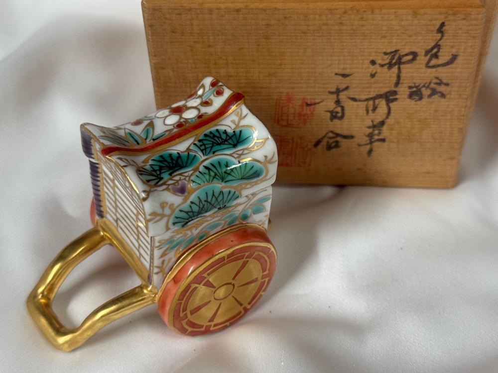 - 茶道具 御所車香合 色絵 松と藤の絵 京都 高野昭阿弥作 USED美品