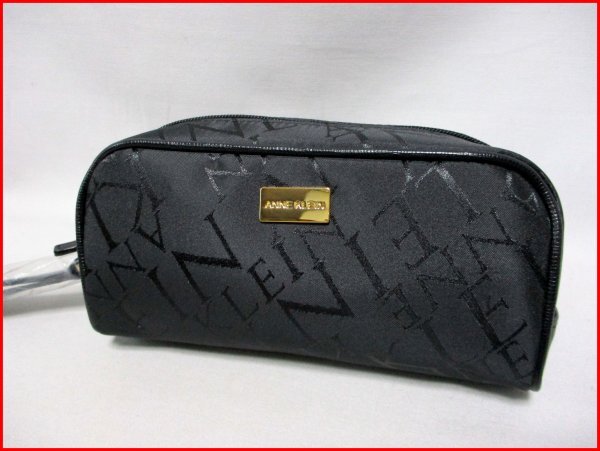 - ANNE KLEIN /アンクライン◇メイクポーチ 未使用 BK ハンドストラップ付 地模様 W20cm
