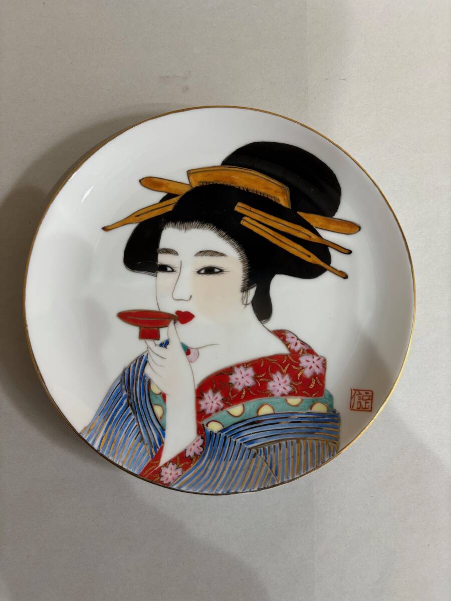 - ◆◇【管理INS00045】富永源六 上源六製 美人画/美人画絵皿/日本美人/着物/飾り皿/絵皿◇◆