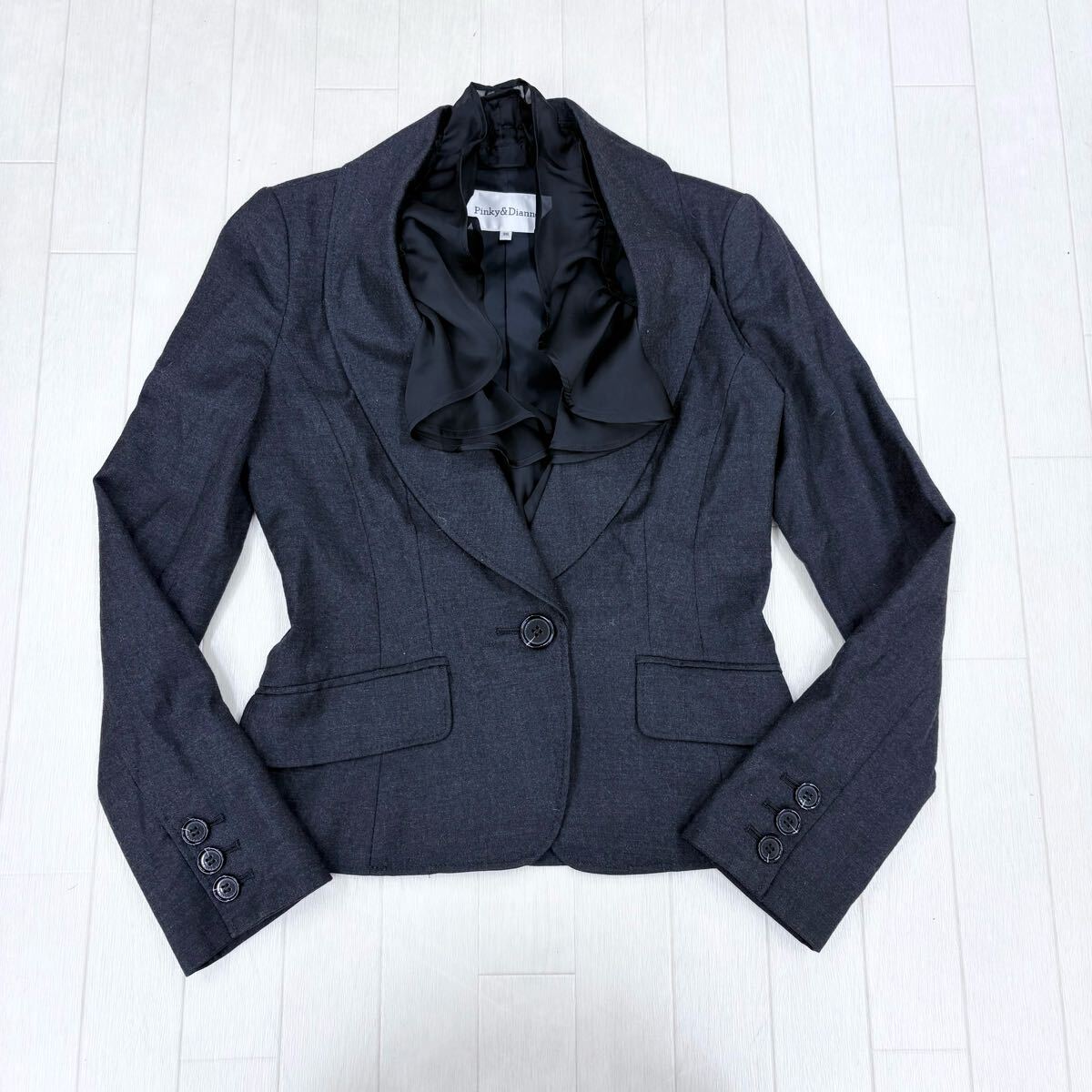 > 1792〓 Pinky & Dianne ピンキーアンドダイアン テーラードジャケット レディース サイズ36 ダークグレー トップス 上着 フリル脱着可能