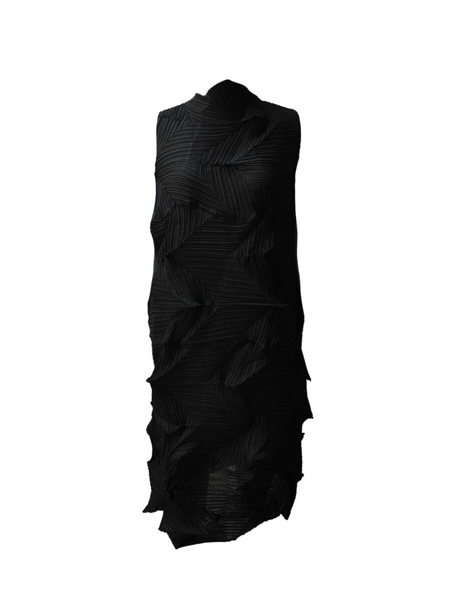- 「同梱1万円送料無料」レディーストップスプリーツpleatsノースリーブワンピースチュニック弾力が肌触 りドレープ性がいい黑