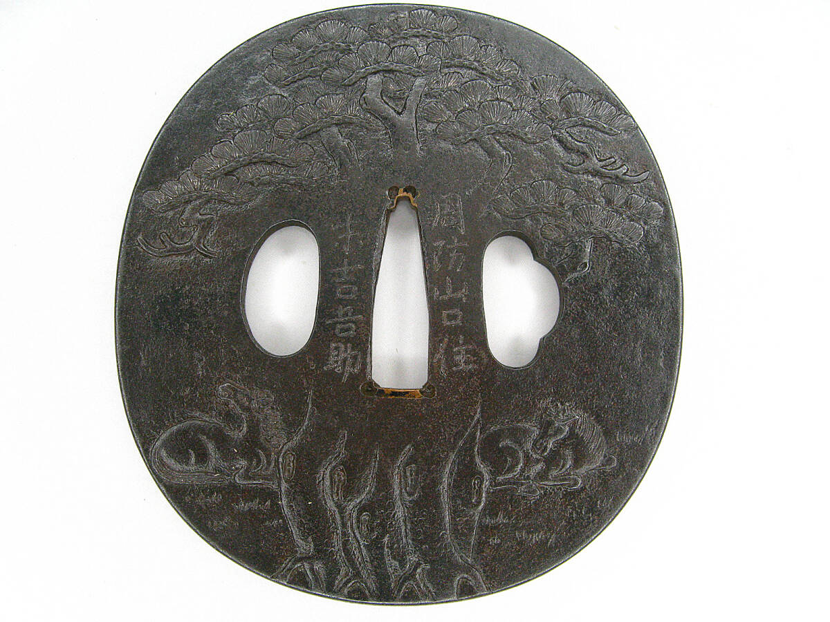 - #在銘 #周防山口住 #末吉吾助 #松に馬 #鉄鐔 #時代 #金工 #日本刀 #刀装具