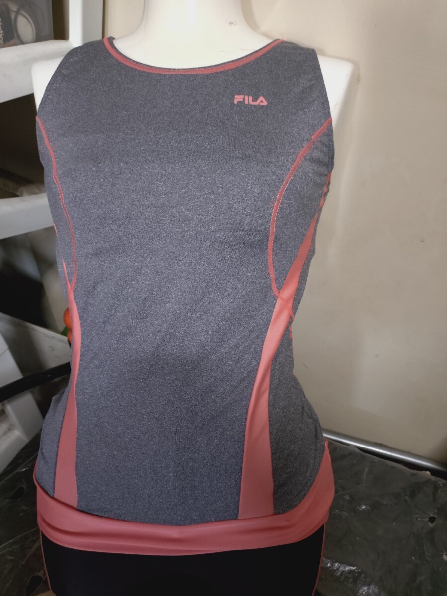 - M4354◆FILA◆フィットネス水着◆セレブなグレー×ピンク系セパレート水着◆7S◆まくれ防止あり