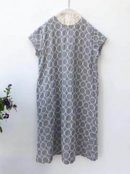 > yh ワンピース サークル刺柄 フリーサイズ 麻100% リネン RINEN ゆったりとした 大人可愛 チュニック 高質 グレー系