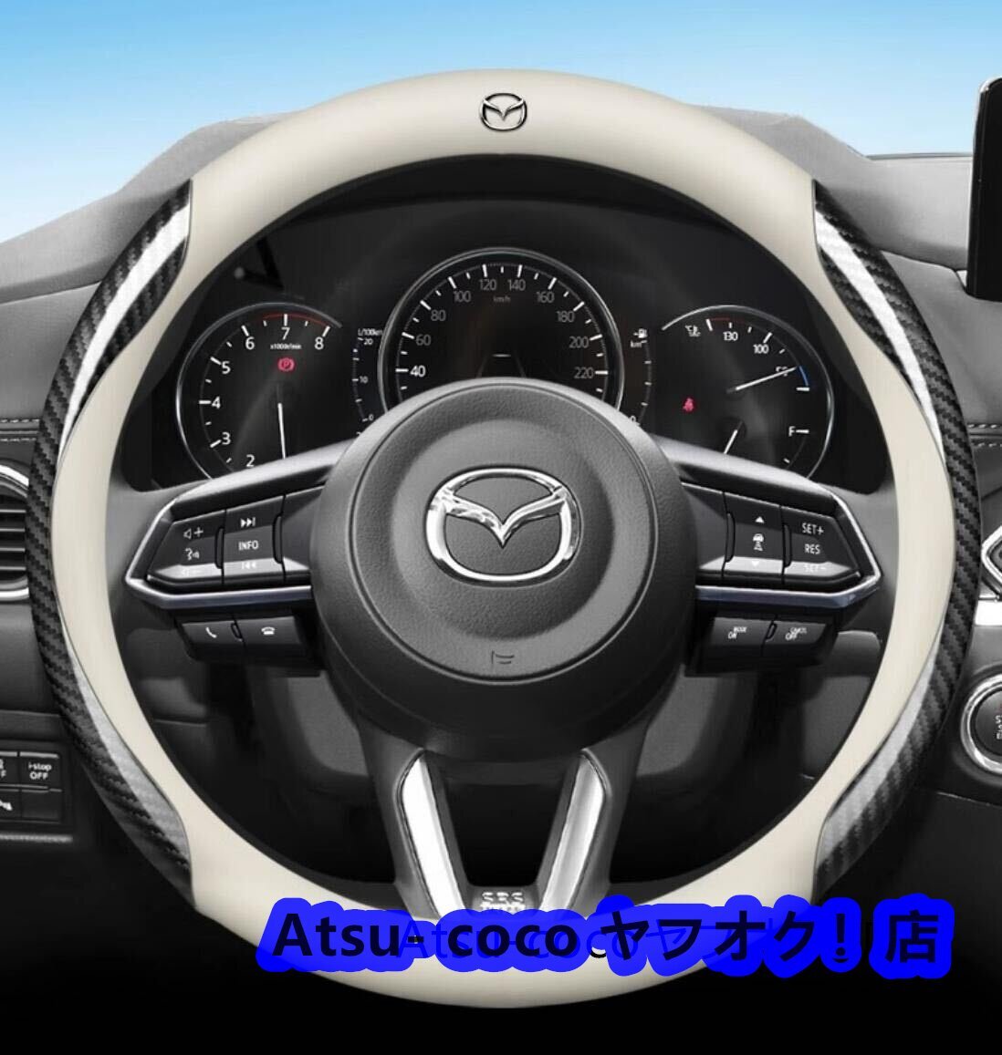 - マツダ 高品質 ハンドルカバー 炭素繊維+高級レザー ステアリングカバー