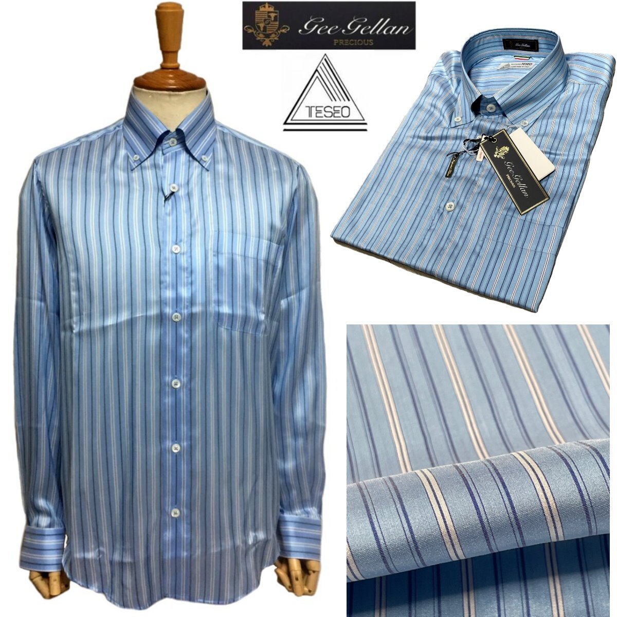 - GEEGELLAN PRECIOUS ジーゲラン プレシャス シルク100% 長袖ボタンダウンシャツ size46 M イタリア TESEO社製シルク生地使用