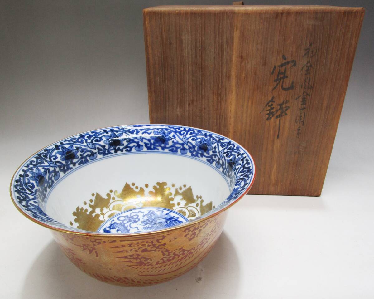 - 《ジャムルK》 KKA0718-92◆九谷焼 畑谷関山 和全風金蘭手 鉢 金彩 龍図 工芸品