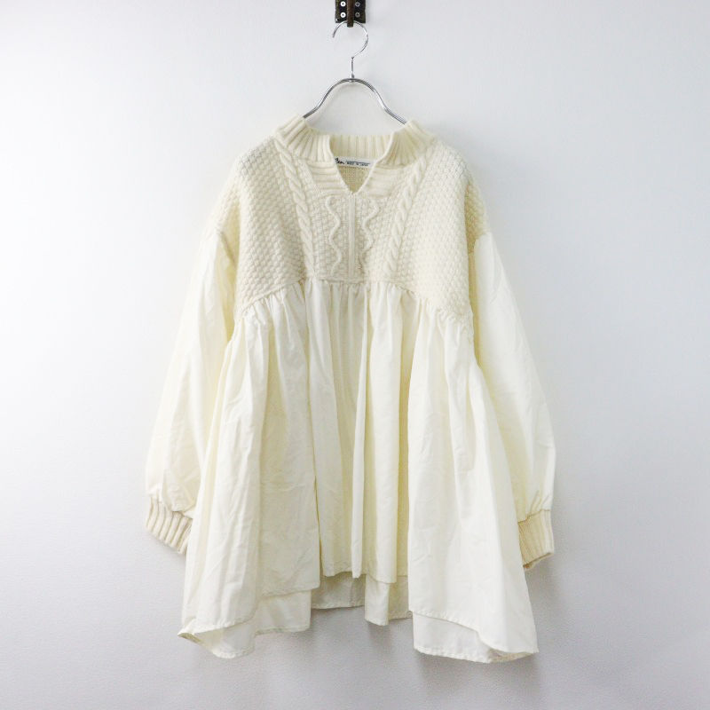 > セン Cen ドッキングニットブラウス M/アイボリー トップス ケーブル 長袖 フレア ギャザーチュニック ロング【2400014521016】