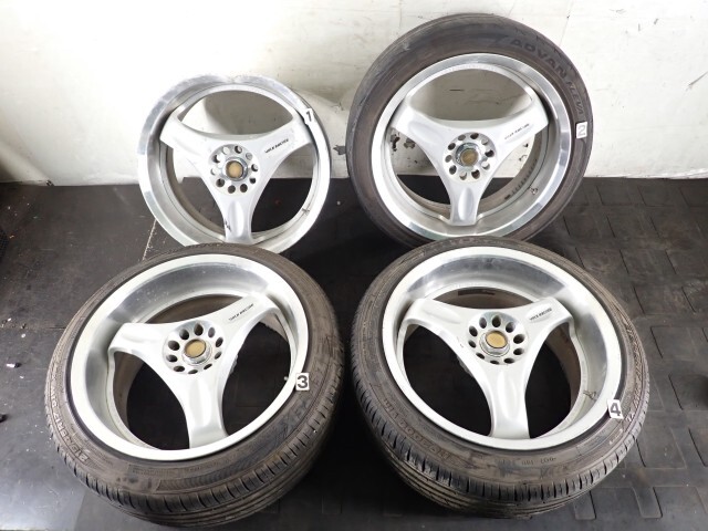 | 備考 | 社外品、4本セット、アルミ、(1)ホイールのみ、(2)~(4)タイヤ付、(2)タイヤ、ヨコハマ、205/45R17、20年4週、溝約2.5mm、要交換、(3)(4)ジーテック 215/45R17、ホイール、(1)(2)17×8J34(3)(4)17×9J38、(1)ゆがみ大、全体スリキズ・ガリキズ多数、バルブキャップ欠品、飛び石跡多数 |
