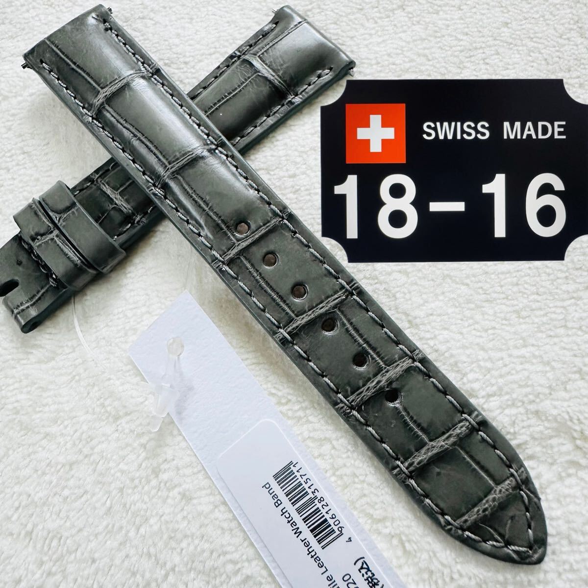 - 1020#18mm-16mmダークアッシュ★本物クロコダイルベルト★スイス製
