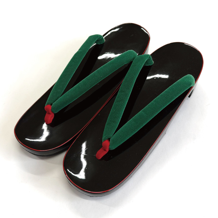 - Lサイズ 黒塗桐下駄 女性 履物 レディース 浴衣 ゆかた げた ゲタ 和装小物 夏着物 グリーン 緑 鼻緒 大きい