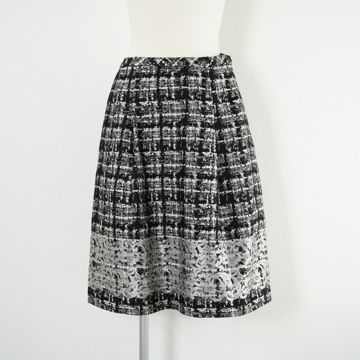 - Leilian レリアン ジャガード スカート タック フレア モノトーン ひざ丈 9