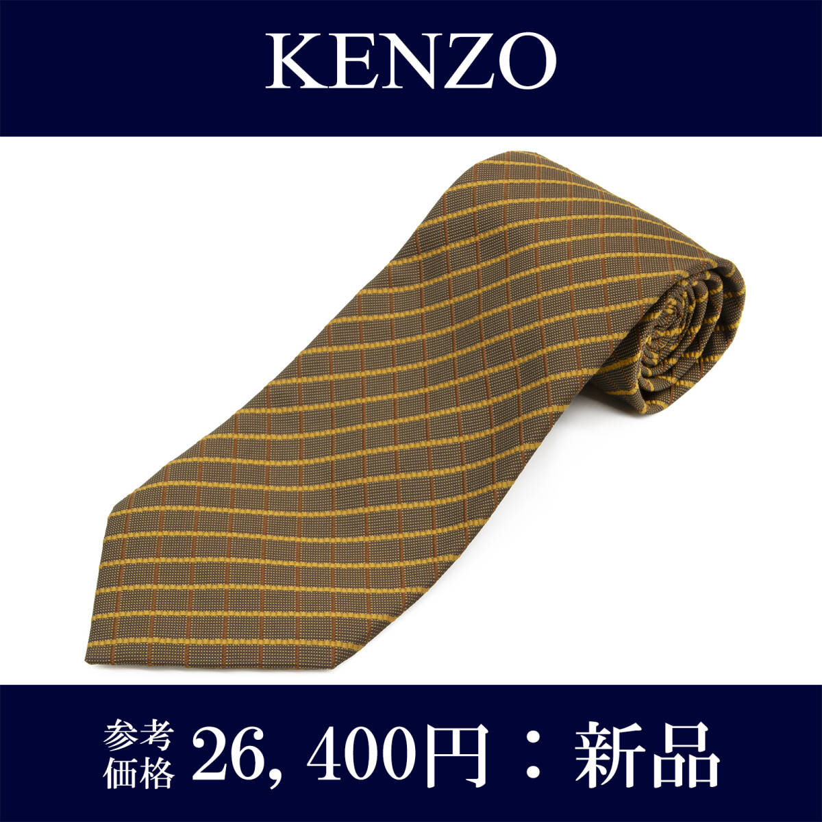 > 送料無料 ケンゾー ネクタイ ジャガードタイ 新品 シルク 茶色 オレンジ シルバー ビジネス チェック シンプル 光沢 ブランド 綺麗 P173
