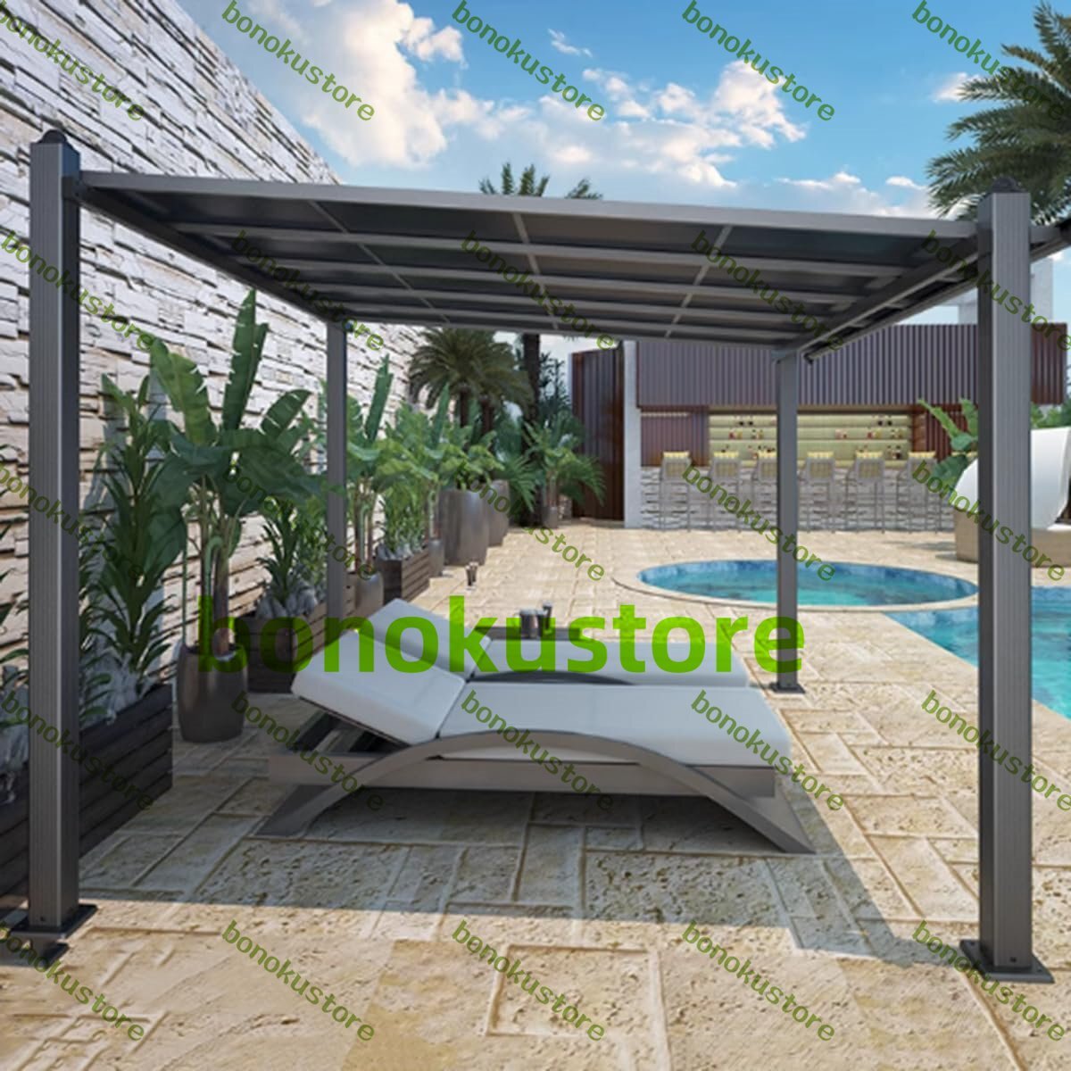 - ハードトップガゼボパーゴラ 壁ガゼボ ガゼボキャノピーオーニングに寄りかかる屋外パティオ 屋外アルミキャノピー 裏庭用 3x3m