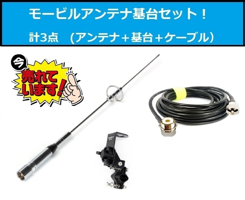 - 高感度 高利得!! モービルアンテナ 3点セット 車載 アンテナ ルーフレール 基台 黒 同軸ケーブル 5m アマチュア無線 144/430MHZ ブラック