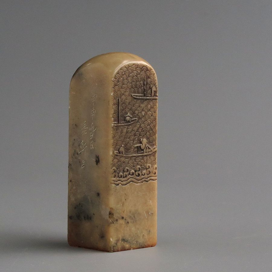 - 【天海】 SY920 文房四宝 篆刻印材 その33 寿山石 青海波舟図 88g