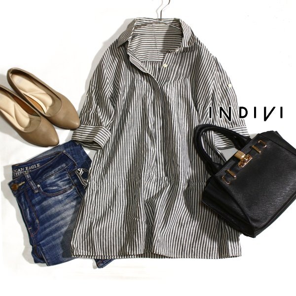 > 美品 INDIVI インディヴィ ゆったり可愛い サイドリボン シルク・コットン シャツカットソー 36号 S 春 夏 25B07