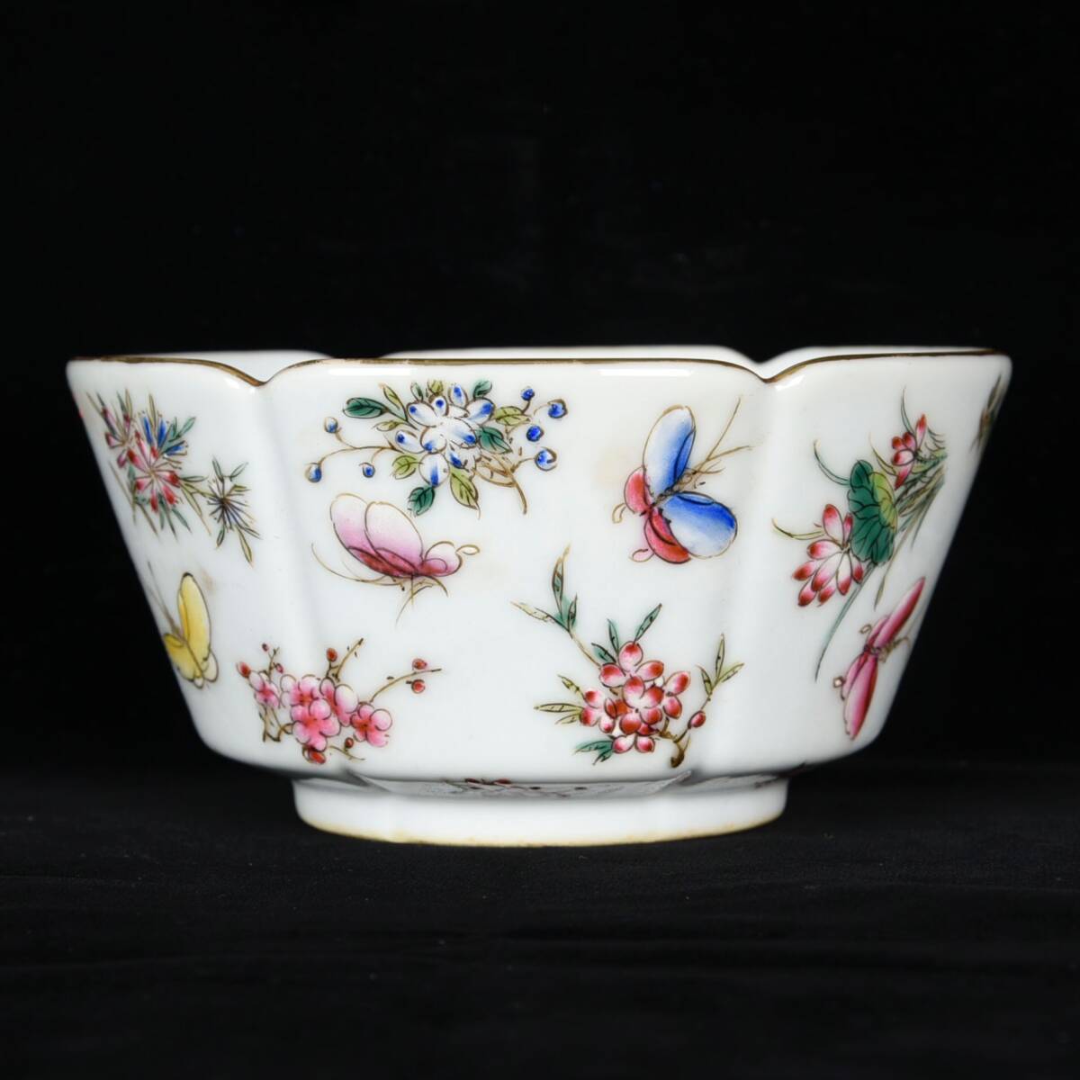 - ▽鴻▽ 清 乾隆年製款 古陶瓷品 琺瑯彩 描金 蝶戀花紋 供碗 陶藝 古賞物 古董品 時代物 稀少珍品 中国古玩 中国古美術